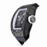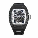 The Richard Mille RM055 White Legend Replica is a luxurious tourbillon watch with a sleek black NTPT Carbon Fiber case and bezel. It is powered by an automatic movement with a caliber of RM055 and a power reserve of 60 hours. The precision of the watch is within COSC certification limits. with a sweep motion second hand. The watch also features a black rubber bracelet with adjustable links and a 904L stainless steel deployant clasp. The skeleton dial has dot indices and 904L stainless steel stick hands. The watch is also water-resistant up to 30m and comes with a 2 year international warranty.